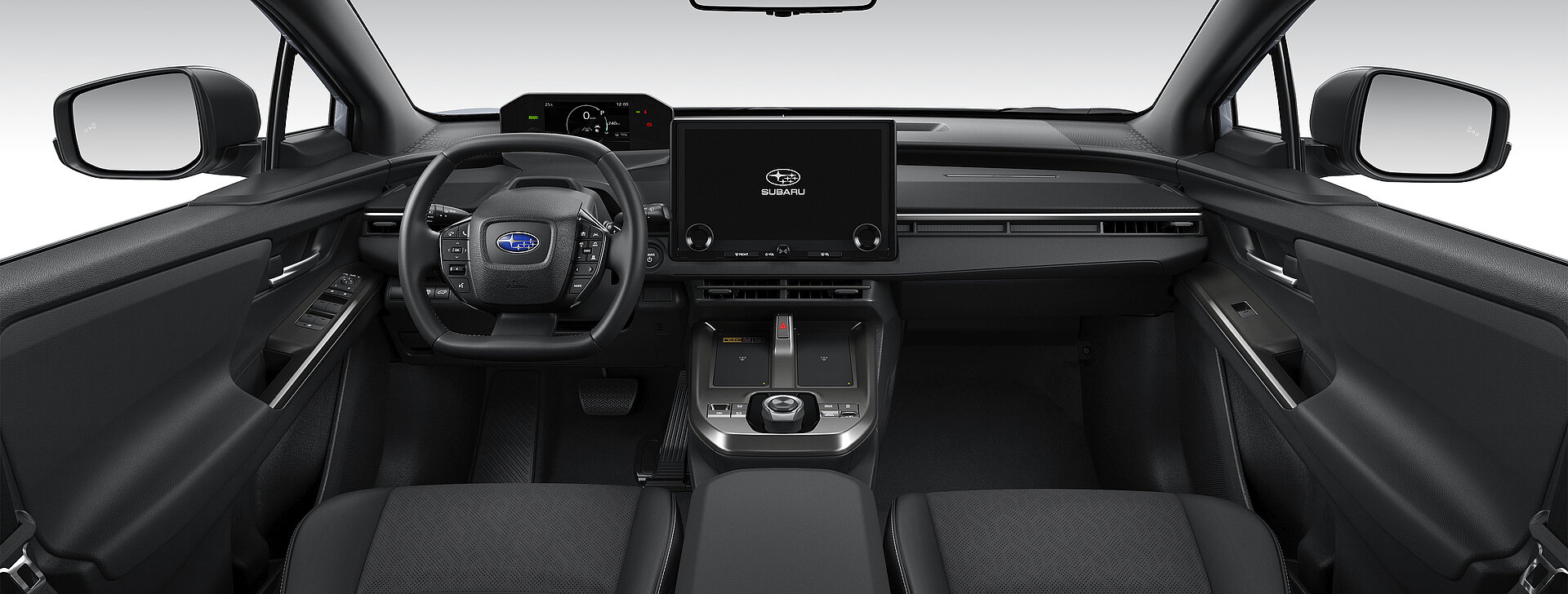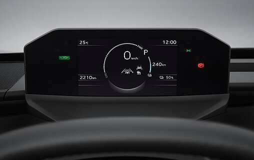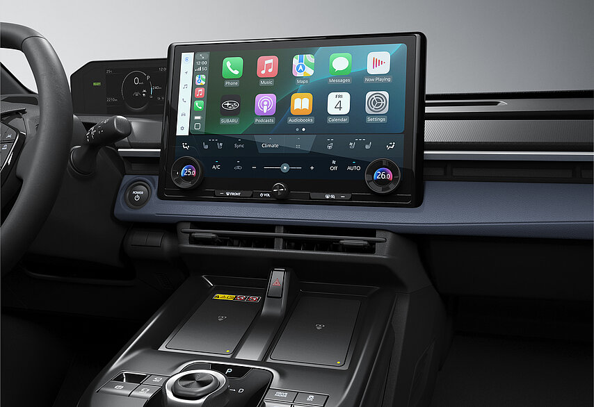 Das Cockpit des E-OUTBACK spiegelt die typischen Designwerte von Subaru wider: Übersichtlichkeit, Klarheit und eine einfache Bedienung. Die horizontale Gestaltung sorgt für ein weitläufiges, offenes Raumgefühl im Innenraum. Gleichzeitig werden alle wichtigen Fahrinformationen übersichtlich auf dem niedrig positionierten Kombiinstrument sowie auf der gut einsehbaren Mittelkonsole dargestellt.