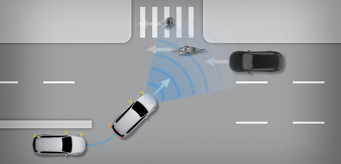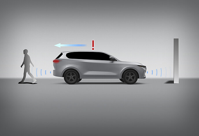 Wenn das Fahrzeug steht und der hintere Radarsensor ein herannahendes Auto oder Fahrrad erkennt, werden die Insassen durch eine Warnleuchte im Außenspiegel auf eine mögliche Kollision aufmerksam gemacht. Wird die Tür dennoch geöffnet, ertönt zusätzlich ein akustisches Warnsignal.