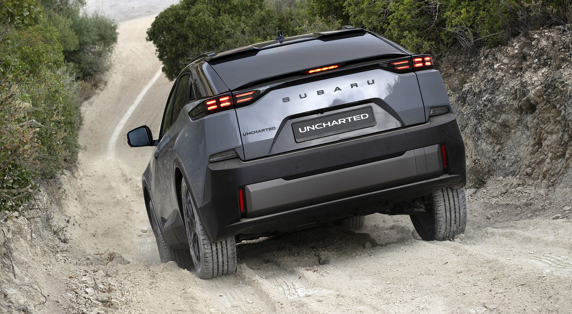 Der Uncharted wurde für Fahrerinnen und Fahrer entwickelt, die nachhaltige Mobilität mit einem vielseitigen, leistungsstarken Fahrzeug kombinieren möchten – ganz gleich, ob im urbanen Alltag oder auf unentdeckten Pfaden. Daher kommt auch sein Name: „Uncharted“ bedeutet „unerforscht“ oder „auf keiner Karte verzeichnet“. Das ist natürlich ein klarer Bezug auf die Nutzungsgewohnheiten typischer Subaru Kunden, die auch gerne abseits der Straße unterwegs sind.